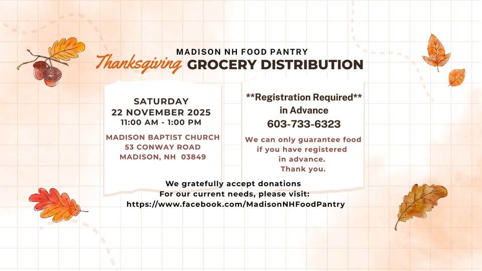 As always, if you are in need of food assistance, please call the pantry at (603) 733-6323.